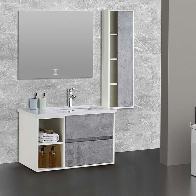 Les vanité de cette salle de bains regarde très à extrémité élevé. Toute la série se compose d'un miroir de LED, d'une partie supérieure du comptoir en pierre artificielle, d'un bassin en céramique, d'une armoire principale et d'une armoire latérale. Elle est petite et exquise mais avec une grande capacité. La méthode d'installation est fixée au mur, qui peut maximiser l'épargne de votre espace à la maison.